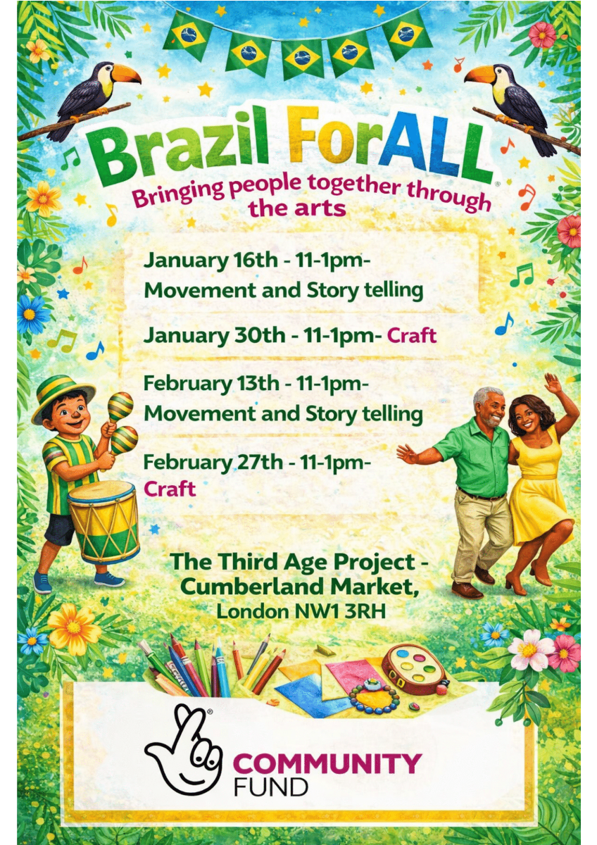 Capoeira WorkshopMovement and History Telling+ Add to Google Calendar+ iCal / Outlook export DateFeb 13 2026 Time 11:00 am - 1:00 pm LocationThird Age ProjectThird Age Project, Cumberland Market, Regent’s Park, London NW1 3RH Category Connect Organizer Third Age Project Phone +44 20 7383 4922 Email info@thirdageproject.org.ukShare this event